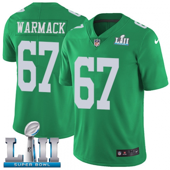 Home>NFL>Philadelphia Eagles>Chance Warmack>Men's Nike Philadelphia Eagles #67 Chance Warmack Limited Green Rush Vapor Untouchable Super Bowl LII NFL Jersey
