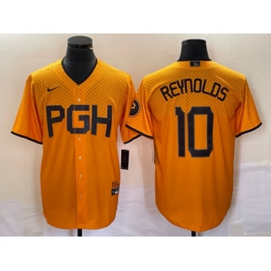 Men's Nike Pittsburgh Pirates #10 Bryan Reynolds Gold 2023 City Connect Stitched Jersey 1