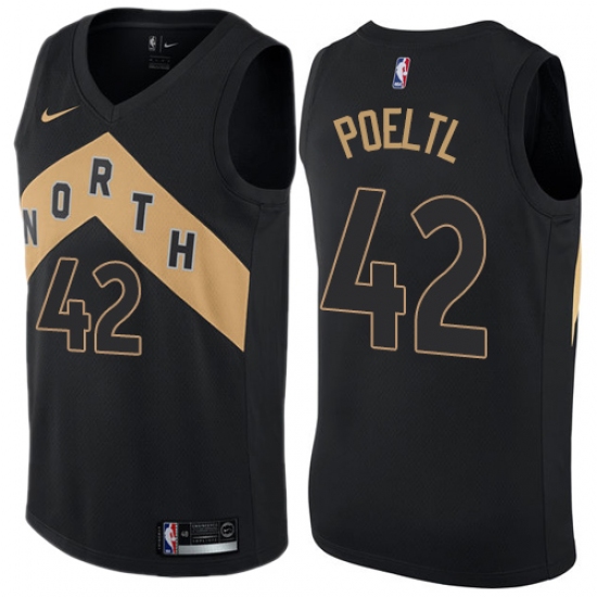 Home>NBA>Toronto Raptors>Jakob Poeltl>Men's Nike Toronto Raptors #42 Jakob Poeltl Swingman Black NBA Jersey - City Edition