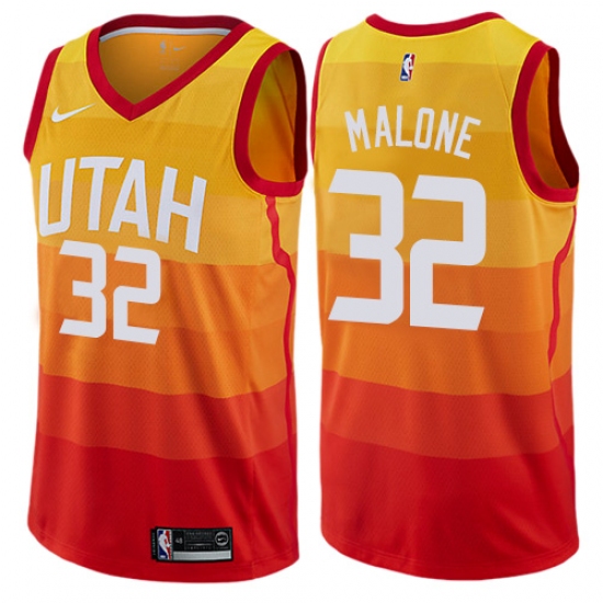 Men's Nike Utah Jazz #32 Karl Malone Authentic Orange NBA Jersey - City Edition