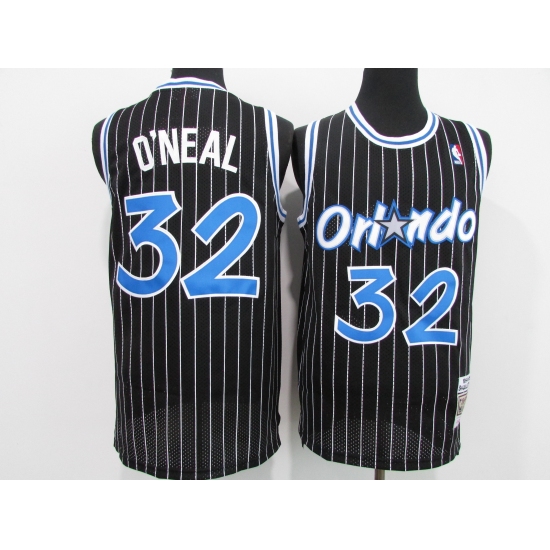 >Men's Orlando Magic #32 Shaquille O'Neal Black Mitchell & Ness Black Retired Player Jersey
