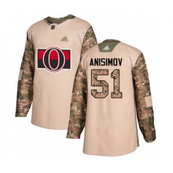 Men's Ottawa Senators #51 Artem Anisimov Authentic Camo Veterans Day Practice Hockey Jersey