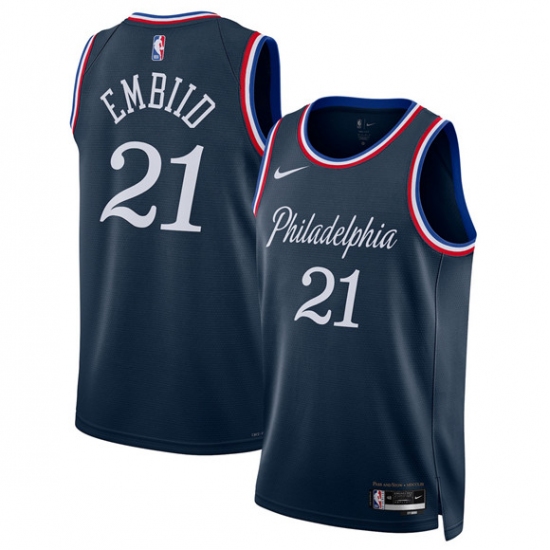 Men's Joel Embiid #21 Philadelphia 76ers 2021-22 City Navy Jersey