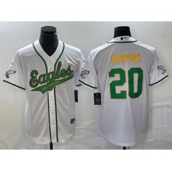 Men's Philadelphia Eagles #20 Brian Dawkins White Gold Cool Base Stitched Baseball Jersey