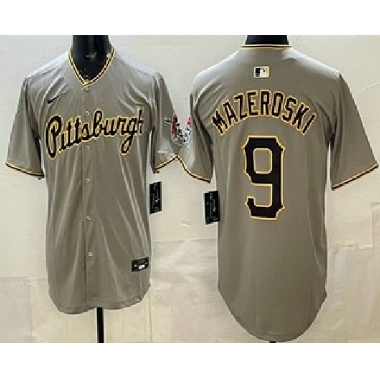 Men's Majestic Pittsburgh Pirates #9 Bill Mazeroski Replica Grey Cooperstown Throwback MLB Jersey