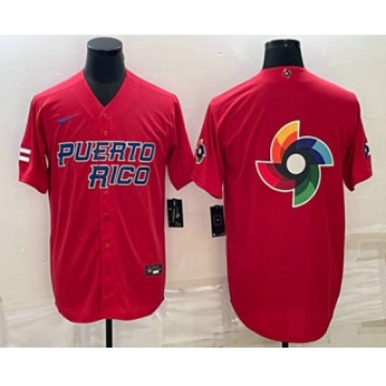 >Men's Puerto Rico Baseball 2023 Red World Baseball Big Logo With Classic Stitched Jerseys