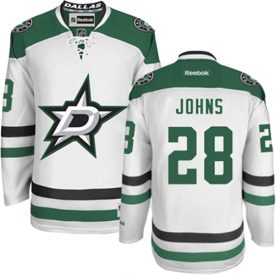 Home>NHL>Dallas Stars>Stephen Johns>Men's Reebok Dallas Stars #28 Stephen Johns Authentic White Away NHL Jersey