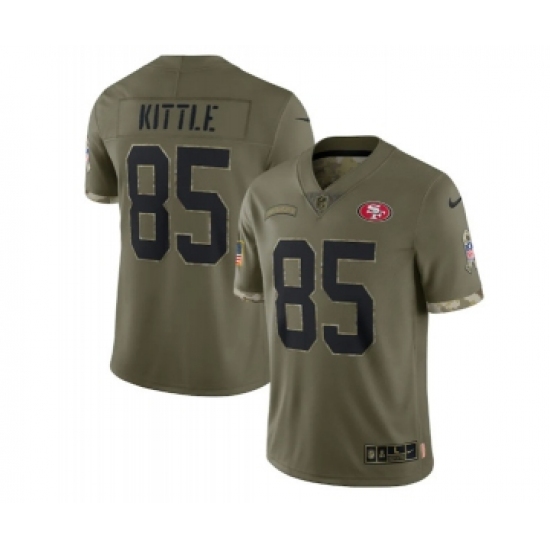 >Men's San Francisco 49ers #85 George Kittle 2022 Olive Salute To Service Limited Stitched Jersey