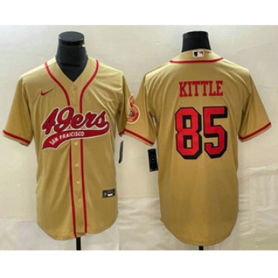 >Men's San Francisco 49ers #85 George Kittle Gold Color Rush Cool Base Stitched Baseball Jersey
