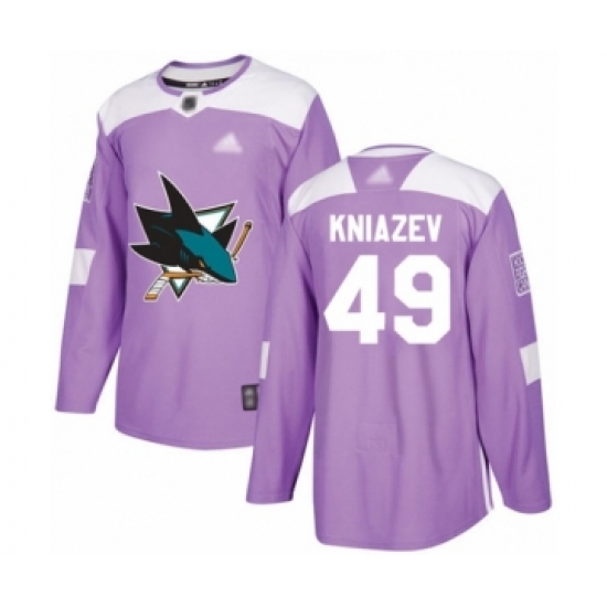 >Men's San Jose Sharks #49 Artemi Kniazev Authentic Purple Fights Cancer Practice Hockey Jersey