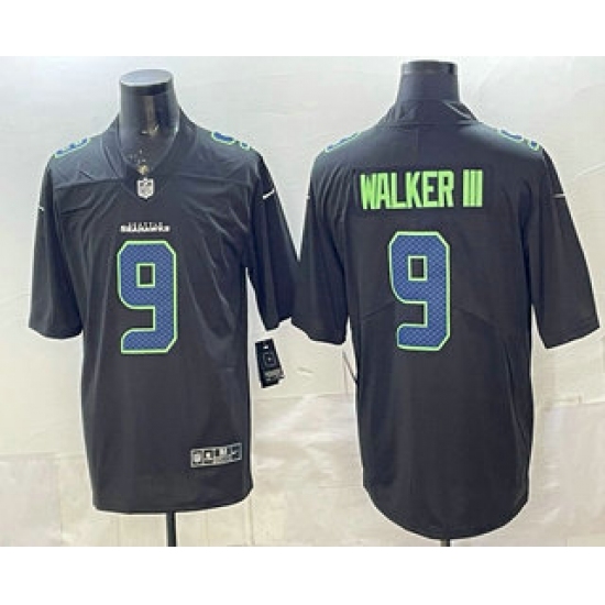 Men's Seattle Seahawks #9 Kenneth Walker III Black 2025 F.U.S.E. 'Gothic Rain City Shadows Edition' Vapor Limited Football Stitched Jersey