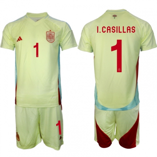 >Men's Spain Team #1 Iker Casillas 2024-25 Yellow Away Soccer Jersey Suit