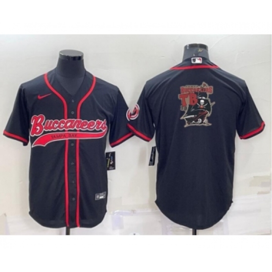 Men's Tampa Bay Buccaneers Black Team Big Logo With Patch Cool Base Stitched Baseball Jersey