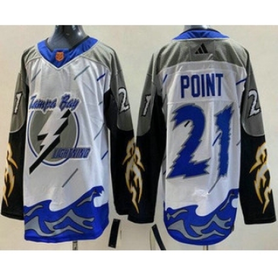 Men's Tampa Bay Lightning #21 Brayden Point White 2022 Reverse Retro Authentic Jersey