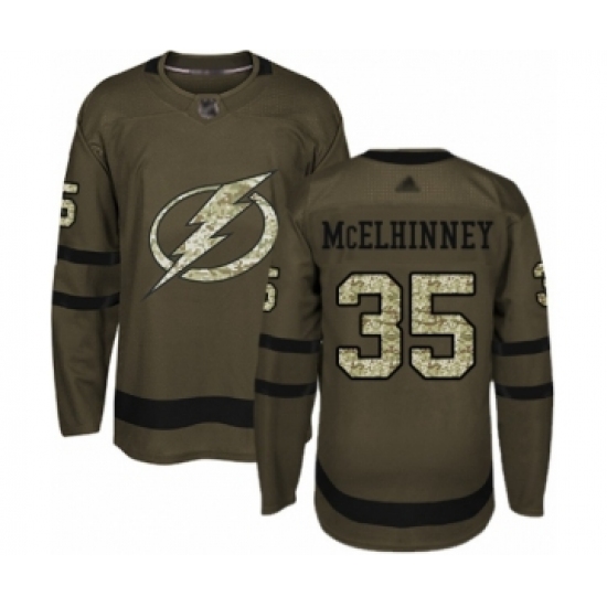 >Men's Tampa Bay Lightning #35 Curtis McElhinney Authentic Green Salute to Service Hockey Jersey