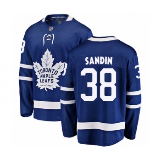 >Men's Toronto Maple Leafs #38 Rasmus Sandin Authentic Royal Blue Home Fanatics Branded Breakaway Hockey Jersey