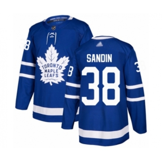 >Men's Toronto Maple Leafs #38 Rasmus Sandin Authentic Royal Blue Home Hockey Jersey