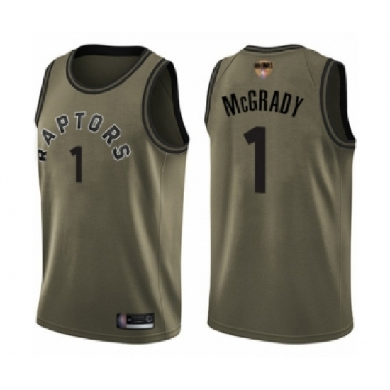 Men's Toronto Raptors #1 Tracy Mcgrady Swingman Green Salute to Service 2019 Basketball Finals Bound Jersey