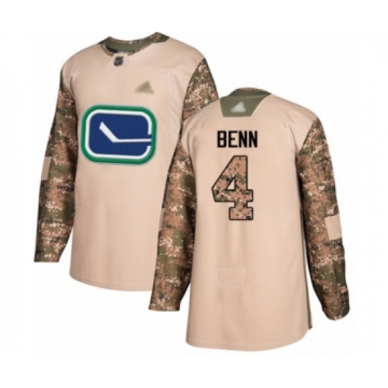 >Men's Vancouver Canucks #4 Jordie Benn Authentic Camo Veterans Day Practice Hockey Jersey