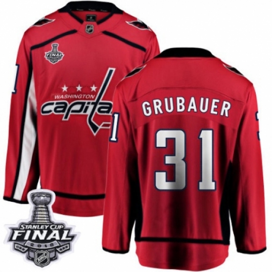 Men's Washington Capitals #31 Philipp Grubauer Fanatics Branded Red Home Breakaway 2018 Stanley Cup Final NHL Jersey