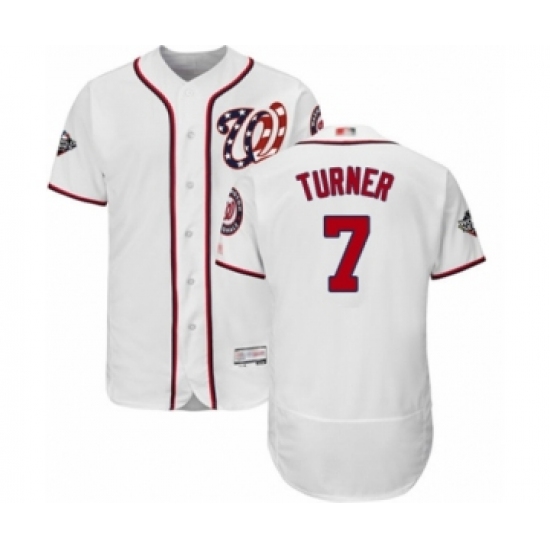 Men's Washington Nationals #7 Trea Turner White Home Flex Base Authentic Collection 2019 World Series Bound Baseball Jersey