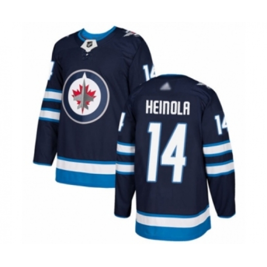 >Men's Winnipeg Jets #14 Ville Heinola Authentic Navy Blue Home Hockey Jersey