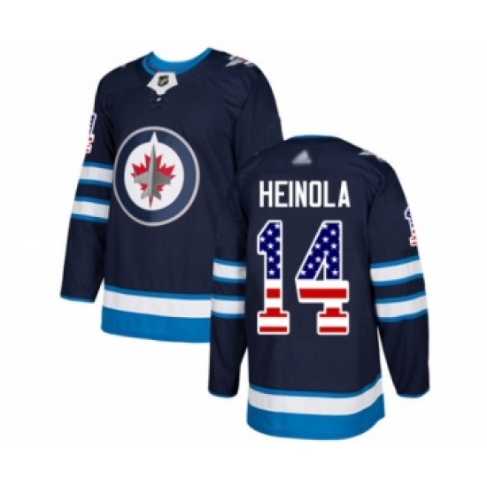 Men's Winnipeg Jets #14 Ville Heinola Authentic Navy Blue USA Flag Fashion Hockey Jersey