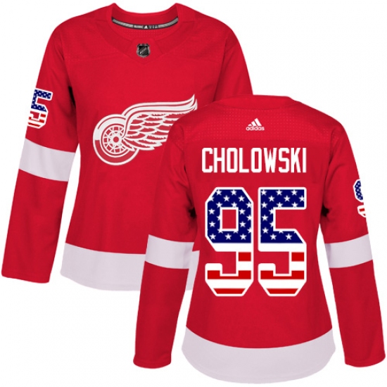 Home>NHL>Detroit Red Wings>Dennis Cholowski>Women's Adidas Detroit Red Wings #95 Dennis Cholowski Authentic Red USA Flag Fashion NHL Jersey