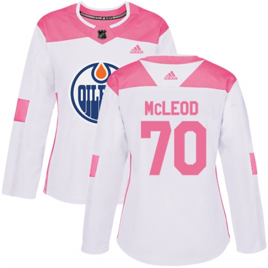 >Women's Adidas Edmonton Oilers #70 Ryan McLeod Authentic White Pink Fashion NHL Jersey