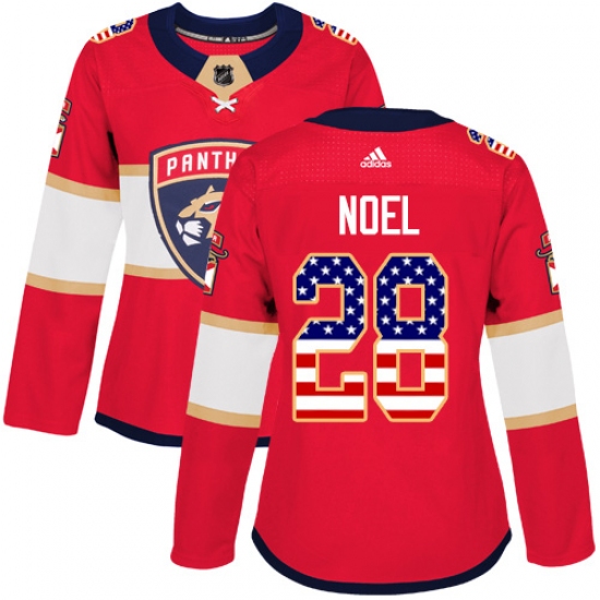 Women's Adidas Florida Panthers #28 Serron Noel Authentic Red USA Flag Fashion NHL Jersey