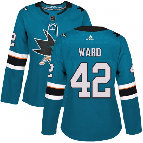 Home>NHL>San Jose Sharks>Joel Ward>Women's Adidas San Jose Sharks #42 Joel Ward Premier Teal Green Home NHL Jersey