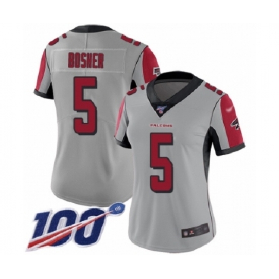 >Women's Atlanta Falcons #5 Matt Bosher Limited Silver Inverted Legend 100th Season Football Jersey