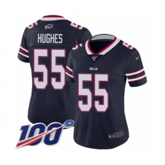>Women's Buffalo Bills #55 Jerry Hughes Limited Navy Blue Inverted Legend 100th Season Football Jersey