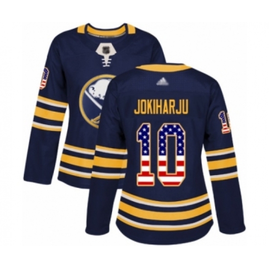 Women's Buffalo Sabres #10 Henri Jokiharju Authentic Navy Blue USA Flag Fashion Hockey Jersey