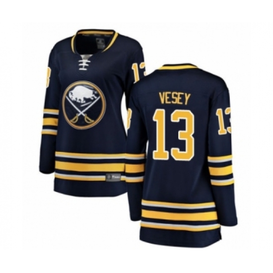 >Women's Buffalo Sabres #13 Jimmy Vesey Fanatics Branded Navy Blue Home Breakaway Hockey Jersey