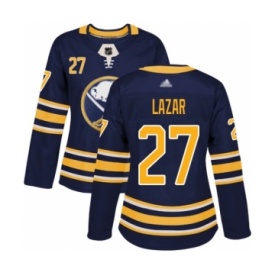 >Women's Buffalo Sabres #27 Curtis Lazar Authentic Navy Blue Home Hockey Jersey