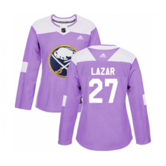 >Women's Buffalo Sabres #27 Curtis Lazar Authentic Purple Fights Cancer Practice Hockey Jersey