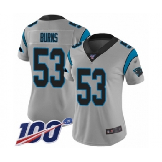 >Women's Carolina Panthers #53 Brian Burns Silver Inverted Legend Limited 100th Season Football Jersey