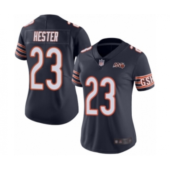 >Women's Chicago Bears #23 Devin Hester Navy Blue Team Color 100th Season Limited Football Jersey