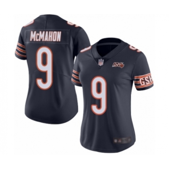 >Women's Chicago Bears #9 Jim McMahon Navy Blue Team Color 100th Season Limited Football Jersey