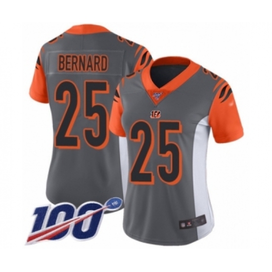 >Women's Cincinnati Bengals #25 Giovani Bernard Limited Silver Inverted Legend 100th Season Football Jersey
