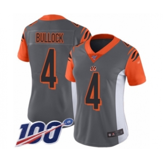 >Women's Cincinnati Bengals #4 Randy Bullock Limited Silver Inverted Legend 100th Season Football Jersey
