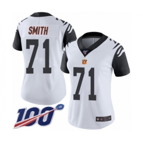 >Women's Cincinnati Bengals #71 Andre Smith Limited White Rush Vapor Untouchable 100th Season Football Jersey