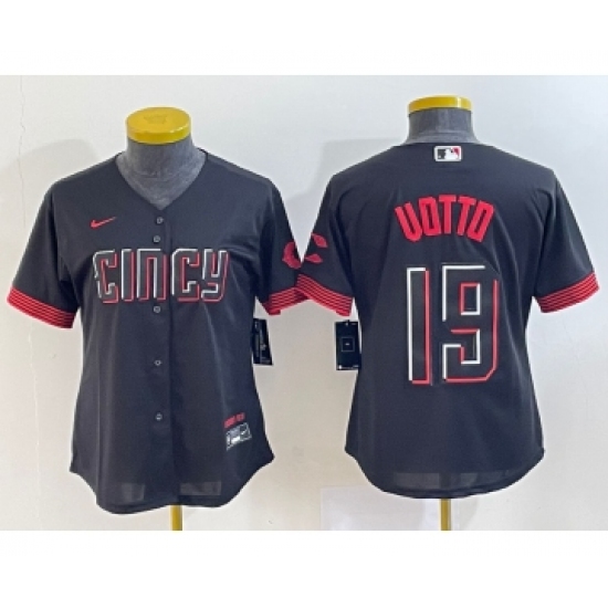 >Women's Cincinnati Reds #19 Joey Votto Black 2023 City Connect Cool Base Stitched Jersey