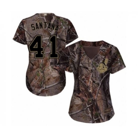 Women's Cleveland Indians #41 Carlos Santana Authentic Camo Realtree Collection Flex Base Baseball Jersey