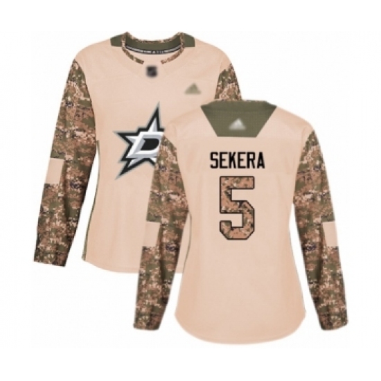 >Women's Dallas Stars #5 Andrej Sekera Authentic Camo Veterans Day Practice Hockey Jersey