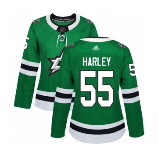 >Women's Dallas Stars #55 Thomas Harley Authentic Green Home Hockey Jersey