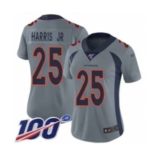 Women's Denver Broncos #25 Chris Harris Jr Limited Silver Inverted Legend 100th Season Football Jersey