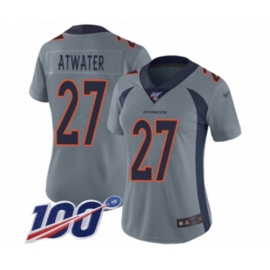 >Women's Denver Broncos #27 Steve Atwater Limited Silver Inverted Legend 100th Season Football Jersey