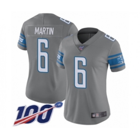 >Women's Detroit Lions #6 Sam Martin Limited Steel Rush Vapor Untouchable 100th Season Football Jersey